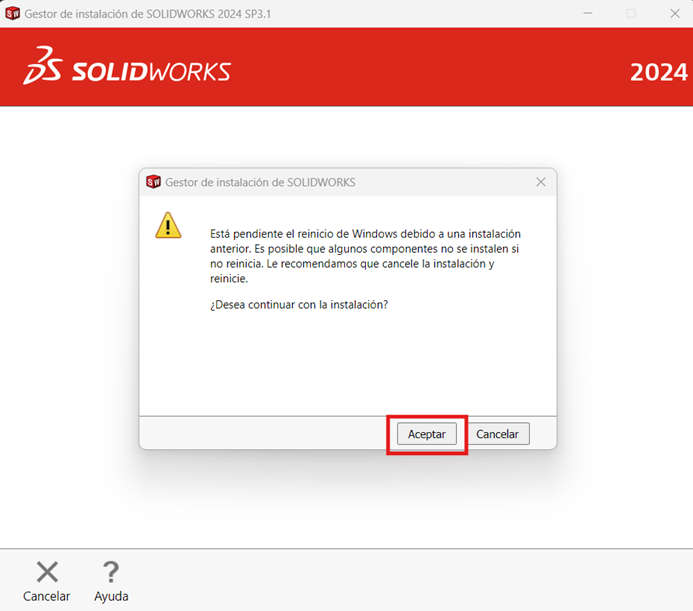 continuar (no hay que reiniciar, solo aceptar el mensaje) y deberemos de dejar