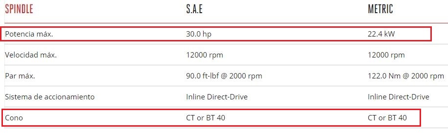 En este caso el cono que utilizan los portaherramientas son CT 40 o BT 40, así que la maquina estaría en la categoría : Light Duty