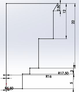 3. Ya que se tenga el croquis bien orientado en el origen del plano, se realizaran agregaran algunas líneas para croquisar el sanco del cortador.