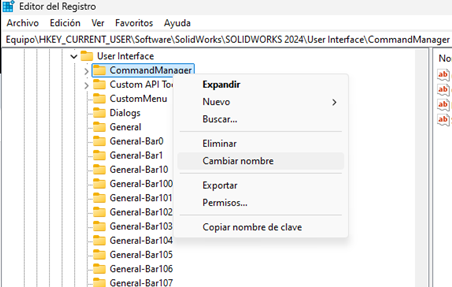 registros de Solidworks, causando que se pierdan los ajustes personalizados que