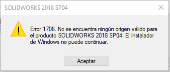 Para corregir este problema solo debe obtener o descargar los archivos de instalación correspondientes a la versión y Service Pack que le este solicitando este mensaje, por ejemplo, para el mensaje mostrado arriba, corresponderían los archivos de instalación de SOLIDWORKS 2018 en su Service Pack 4.0.