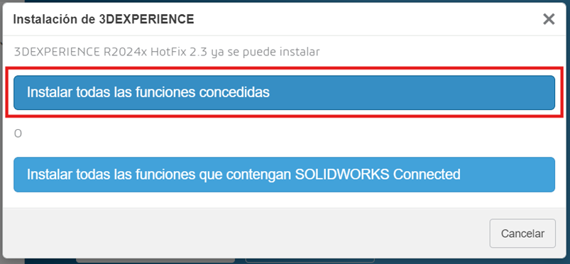 Si al ejecutar SOLIDWORKS Connected le aparece un mensaje indicando que una actualización es requerida (a SOLIDWORKS Connected 2025) y al intentar actualizar SOLIDWORKS Connected desde 3DExperience Plaftorm le aparece el mensaje "Error de ...