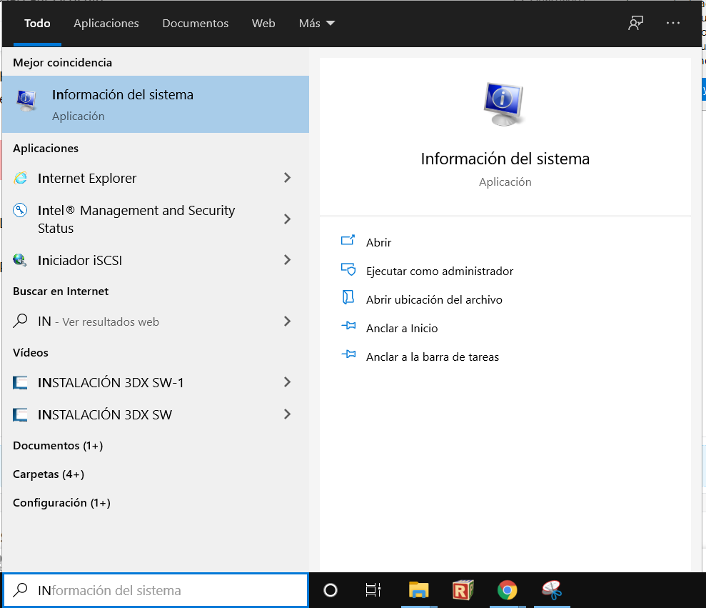 Para revisar los requerimientos mínimos coloque en el inicio de windows "INFORMACIÓN DEL SISTEMA".
